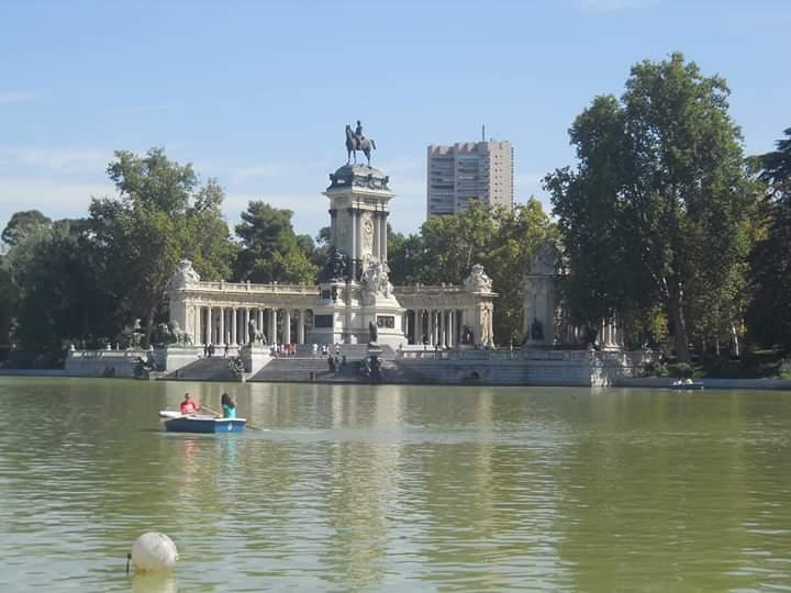 Estanque Grande del Retiro, con la estatua ecuestre del rey Alfonso XII,