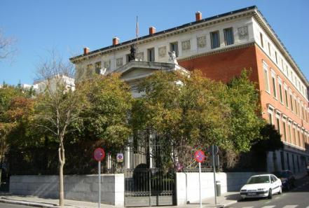 Pórtico de entrada a la sede de la Real Academia Española de la Lengua,