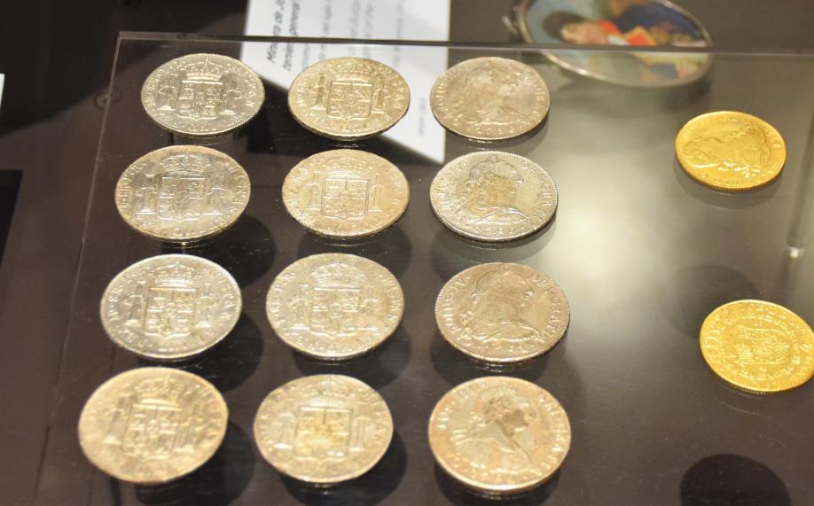 Doce monedas recuperadas del pecio de la fragata "Nuestra Señora de las Mercedes". Museo Naval,