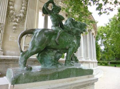Niño a lomos de un león, el Retiro,
