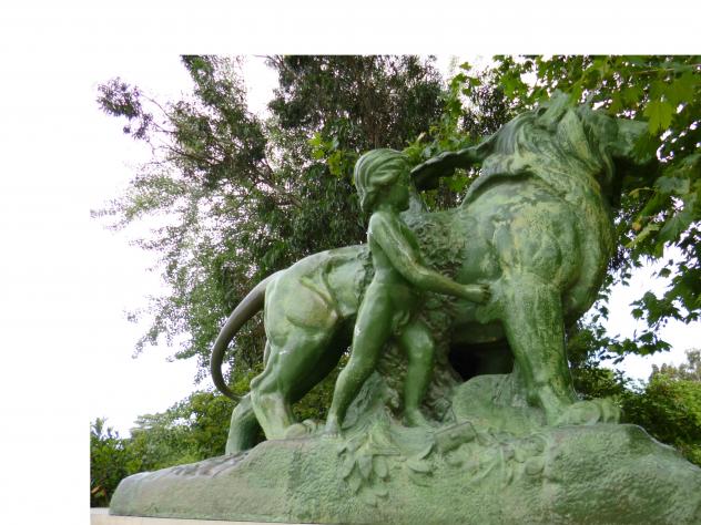 Niño acompañando a un León. Escultura,