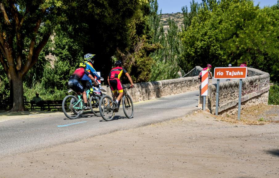 ciclistas en el puente,