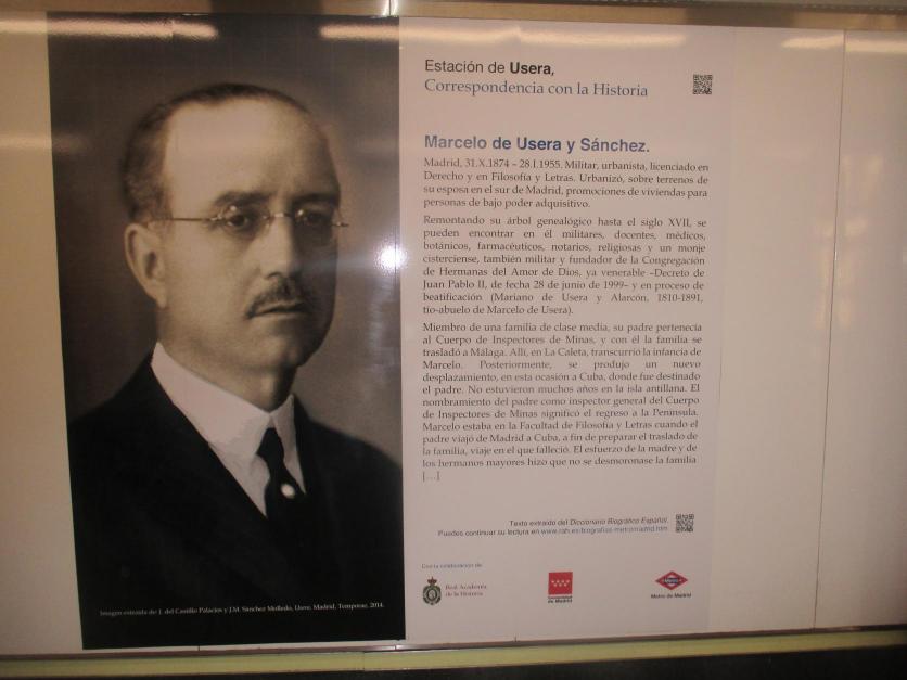 Biografía del urbanista Marcelo de Usera y Sánchez en la estación de metro,