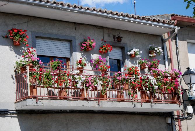 Balcón con macetas,