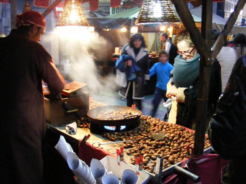 Asando castañas, mercado medieval,