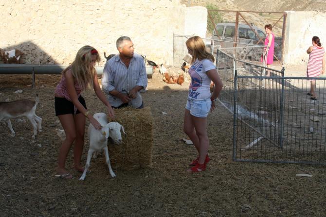 Esteban enseñando a las jóvenes el día a día,