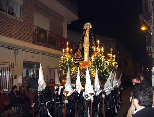 ¡¡¡VIVA LA VIRGEN DEL PASO!!! Creo que en estos momentos dificiles para la semana santa que tanto nos gusta hemos de apoyar a su cabildo para que intente hacer rebrotar la pasión por nuestras costumbres, enhorabuena a los que dia a dia trabajais para hacerla realidad, por cierto, la elección del nazareno del año 2006 creo que ha sido muy acertada pues por su juventud seguro que anima a que los jovenes se integren. Gracias. Uff... Que podria decir yo de la mas grande...soy un estante de la virgen y no por despreciar a las demas hermandades pero llevar a la virgen es lo esperado cada año por mi y deseado, cada estante es de su padre y de su madre nos vemos por el pueblo de vez en cuando pero esa noche parece que nos pasamos el año juntos nos unimos como una piña...os invito a venir y ver como la virgen se pasea por nuestras calles de la ñora Viernes Santo VIVA LA VIRGEN DEL PASO...AL CIELO CON ELLA... Las hermandades que desfilan en el pueblo de La ñora son 10, y todas ellas pertenecen a una única cofradía que recibe el nombre de La Virgen del Paso, patrona del pueblo a la que se tiene gran devoción. Esta hermandad esta hermanada con la hermandad del stmo. Cristo de la esperanza de murcia. Que procesiona en la tarde del domingo de ramos de dicha capital.