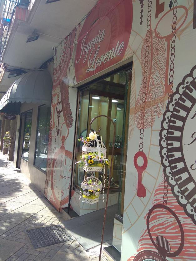 Una gran iniciativa de la Asociación de Comerciantes y Profesionales COM-PRO de Molina de Segura, adornas todas las puertas de los comercios con estos colgadores florales y sus jaulitas.