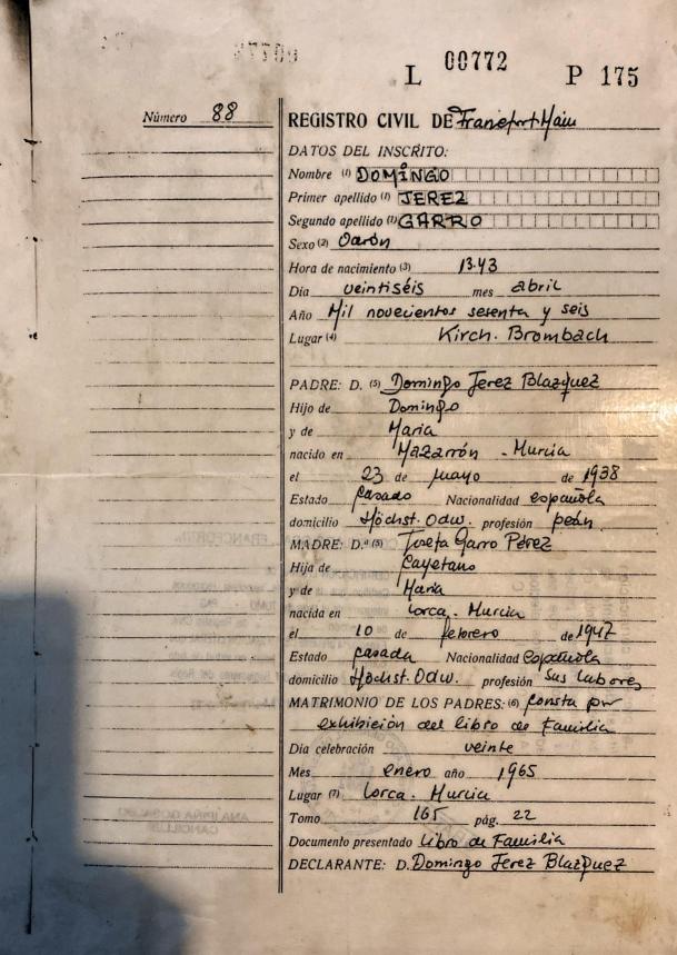 La partida de nacimiento de un Moratero.