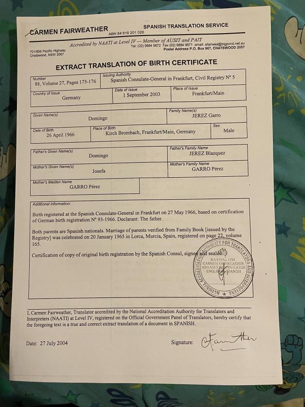 Certificado de un poco de Totanero,
