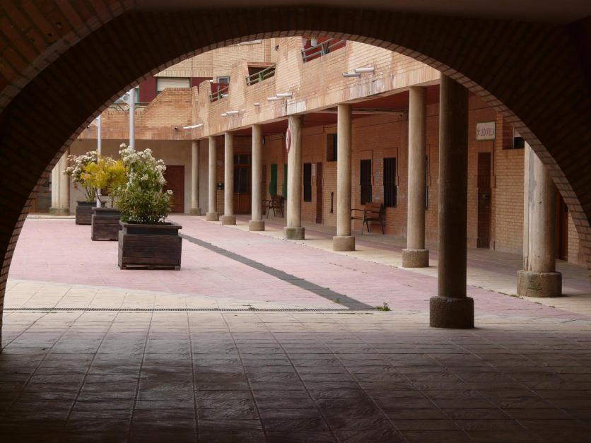 Un patio con soportales,