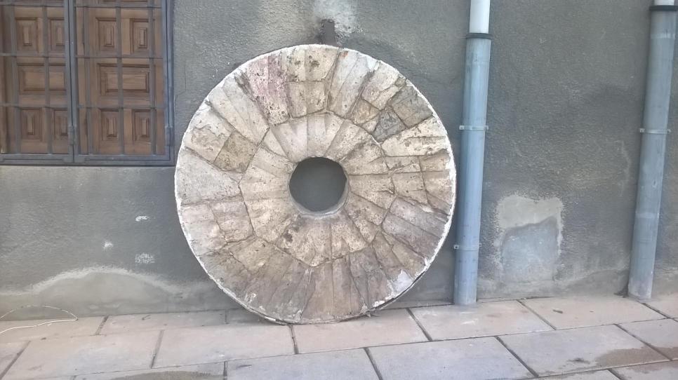 Una piedra de molino decorando,