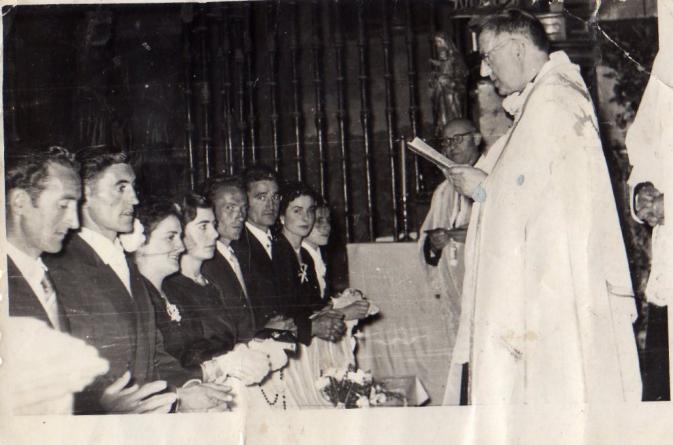 El tío Agustín casando a mis tíos Cecilio y Asun y Benjamín (hermano de Cecilio) y Carmen.