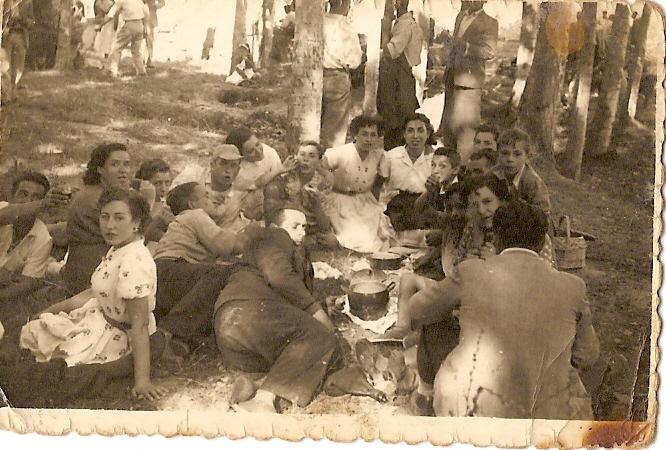 de izda a dcha: felipe (el chiquillo, marido de jesusa), milagros, detra feli, alicia estebas, cencio (tumbado), carmelo (visera), angelita, paco, celia, presen (hermana de felisa y lucia), carlos del rio, felisa, sidoro, ramon y jose mari, en medio de ellos marina (su madre), de espaldas braulio, y tumbado en primer plano, jose maria del rey (el herrero). saludos. me han dicho que ponga los nombres en esta foto. solo tengo dudas de los nombres de los hijos del herrero. los pondre de todos modos. saludos. alguien me ha preguntado por esta foto. la foto esta tomada en najera el dia de la feria.
