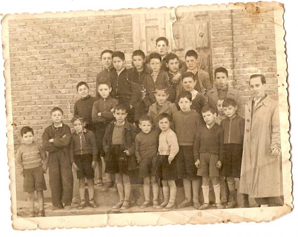 Don Honorio, fue mi quinto y ultimo maestro su madre era clienta mia,... El que esta junto al maestro puede ser Juanramon Al lado es Manolo el siguiente puede ser Jesus el cura el que esta junto a Bruni es Pedro el de Francisco la foto sera de 1955