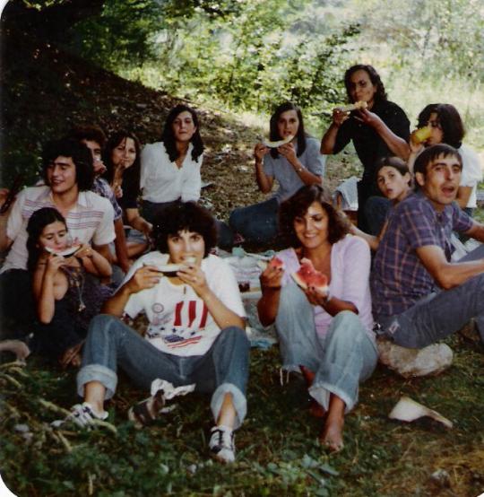 estoy deseando de que llegue la primavera para pasear por alli. una gran familia y muy buenos vecinos. recuerdos Inma. Con lo bien que se está en verano al lado del rio.... que entusiasmadas-os se os ve con la sandía. De los hermanos solamente falta jesus Mari.... qué era el fotógrafo... o se había ido con los cuñados a explorar el territorio. Buena imagen de la familia distendida.