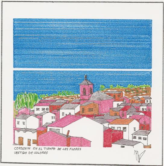 ¿Quíen firma este dibujo tan colorido?, está el pueblo muy alegre y como dice Azucena con la raya blanca del cielo parece que estamos en la costa con el mar de fondo. Felicidades, a todos enamorados, un saludo para todos y para ti primo un estiron de orejas por tu cumple ayer. parece q estamos al lado del mar me gusta