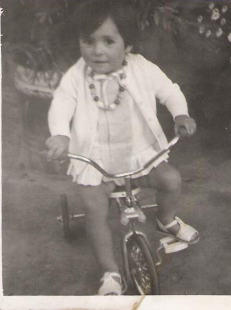 Recuerdo a Ramos asi, viviracha y alegre. Bonita foto Ramos, sigue siendo tan guapa y está completamente reconocible, preciosa con su triciclo, su collar.... presumida, presumida. Veis como la niña que hay delante de alvaro en la foto de la escuela, es mi hermana Ramos (y no anabel), que tiene un año menos, asi que tendria en la foto ni un año, que juapa sigues siendo te quiero un beso Y Ramos por lo que veo empezo bien pronto, está total, esa mirada y ese gesto es reconocible para mí, el collar seguro que era de la Encarna.