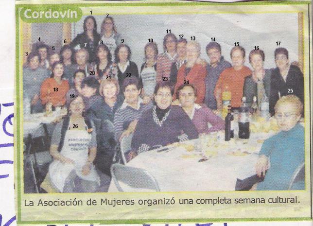Ahí van los nombres de todas: 1-Gracia, 2-Juli, 3-Josefa, 4-Dioni, 5-Paz (de canillas), 6-Sara U., 7-Asun, 8- Sara M., 9-Estrella, 10-MªCarmen, 11-Nati, 12-Conchi, 13-Ali, 14-MªJesus, 15-Pili, 16-Celia, 17-Petra (bar), 18-Loli, 19-Lujan, 20-Esmeralda, 21-Cari, 22-Lauri, 23-Tere, 24-Elvira, 25-Puri, 26-Sonia. Supongo que estarán bien porque me los acaba de decir mi madre que estaba en la cena, jeje.