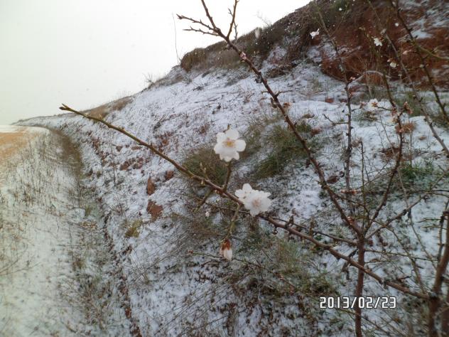 Nacho parece que mas que ponernos almendros en flor, nos ha dedicado un pequeño ramo... como si fuera una especial y delicada orquídea. Lourdes, Nacho te ha puesto dos flores de almendro con nieve de fondo. Algo es algo, pero hay almendros con mucha mas flor, lo que ocurre es que con este frio polar, quien sale a buscarlos.