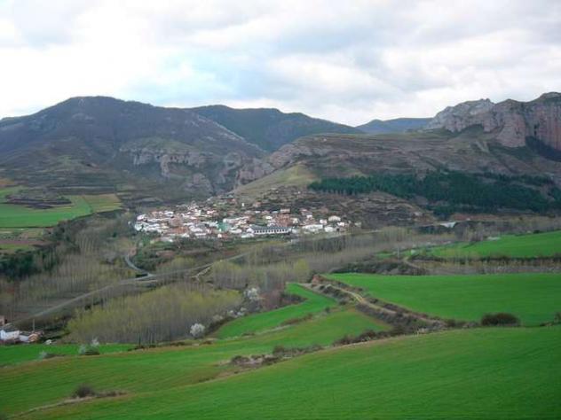 Vista de Matute desde Cerro Baños, con el monte Sanquiles a la izquierda y la Peña Tobía a la derecha, ocultando parcialmente el cerro de Peñalba. Por el estado de los sembrados y las puntas de los chopos parece tomada en Marzo-Abril. VICENTE MONTES, LEGANéS.