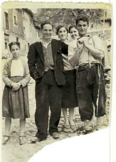 De las dos chicas de atras una es Avelina, hermana de mi tio Francisco la otra no lo sé. Por cierto tu padre es igual que Eduardo. La que se ve entera, puede ser la Felisa? Después de este fin de semana me he enterado de quien es una de las chicas que está detrás, es una hermana mayor de Faico. pues empèzando por la niña, que es Amparo, luego sigue Francisco y mi padre, creo que las dos chicas que están detrás son Pelelas, pero no estoy segura. Aunque no parece que esta foto le guste a todo el mundo a mi me encanta. De aqui venimos, de la sulfatadora el traje de pana el empedrado roto. Maite te agradeceria aún mas, si nos dices quienes son todos.