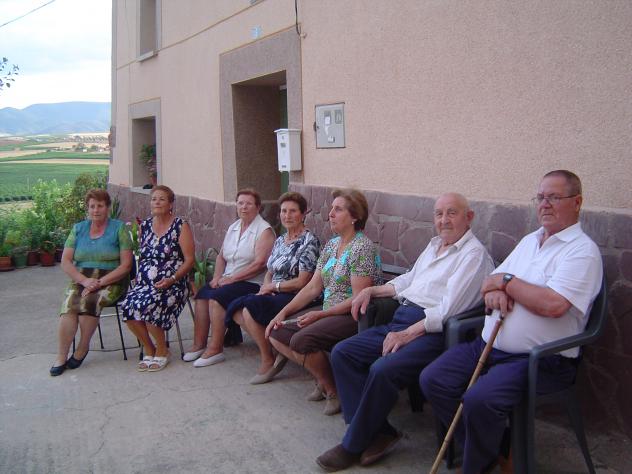 pueblo descansando y charlando. De izda a derecha son: Feli, Margari, dueña de la casa (no sé como se llama), Palmi, Mª Angeles, Sr. Inocencio Ibarra y Sr. Jesús, dueño de la casa.