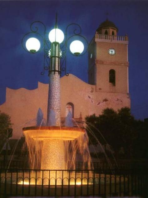 [GoogleBarVIP= 6]. Iglesia Parroquial San Jaime, tiene como patrones a Santiago Apóstol y a la Inmaculada Concepción. En primer plano el paseo, que en la actulidad ofrece otra fisonomía porque ha sido remodelado.