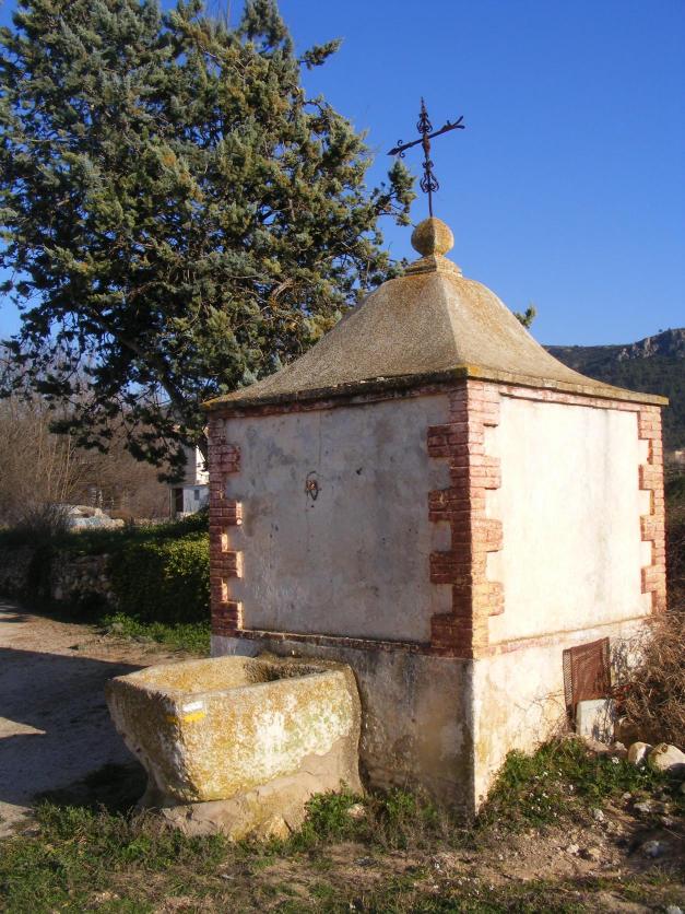 Un pozo con caseta de obra,