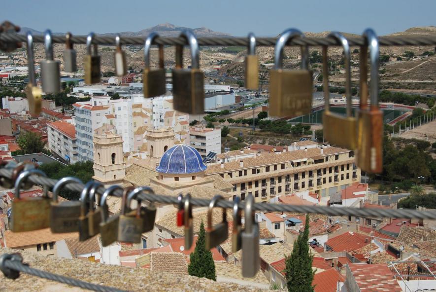 candados sobre la Iglesia de San Bartolomé en el mirador del castillo,