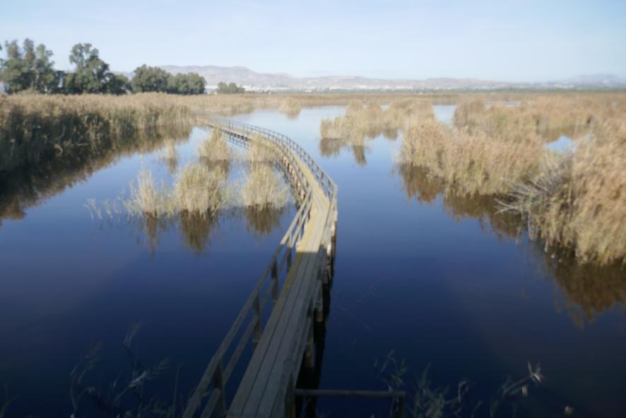 Pasarela de palafitos en el Hondo,