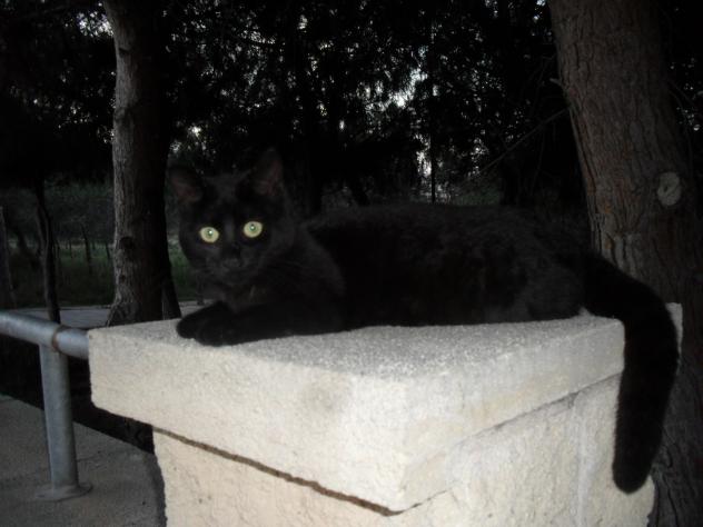 Un gato negro, precioso, con unos ojos verdes,... de impacto,... de mala suerte nada, es una buena suerte el encontrarse un gato así de bonito,... aunque sea negro,.....