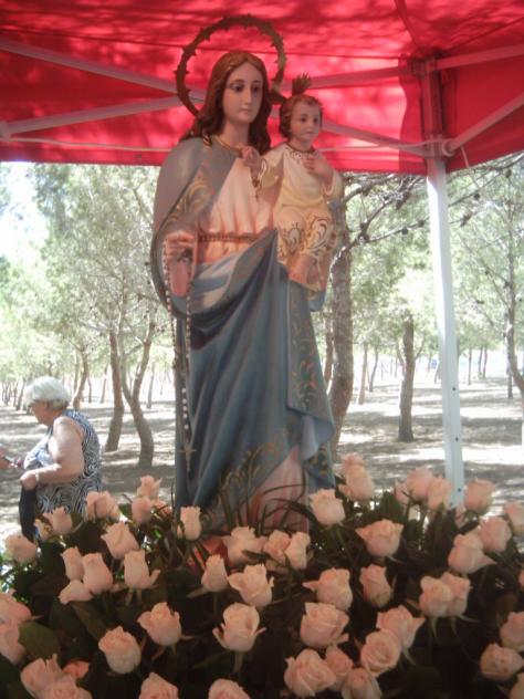 El domingo a las 12 fué la misa de campaña cantada por el coro rociero de Torrevieja, se obsequió a los presentes con bocadillo y refresco y a las 6 de la tarde se volvió la imagen a hombros a la iglesia de La Mata.