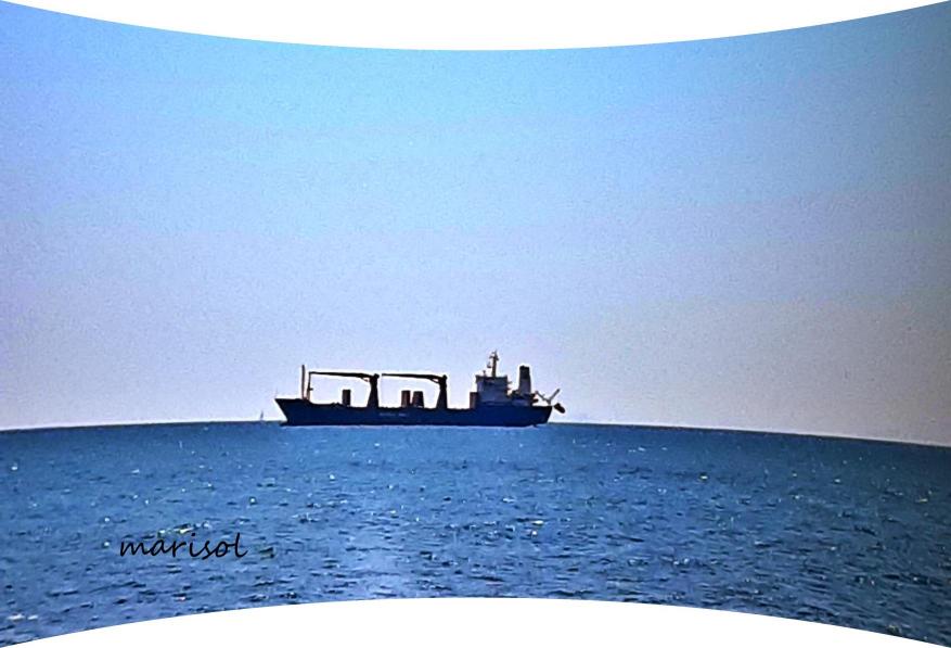 Carguero en lejanía esperando le den paso para carga sal