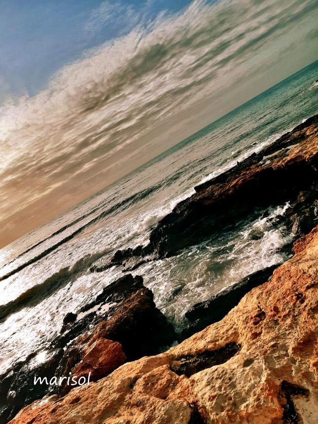 Rocas, mar, nubes, cielo,