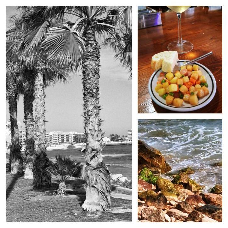 Palmeras, aperitivo y piedras mar,