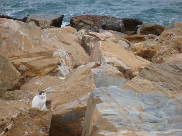Gatito en las rocas,