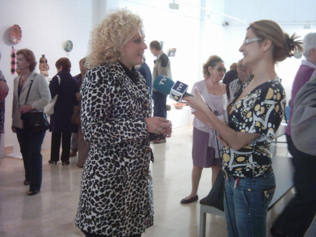 haciéndole unas preguntas la periodista.