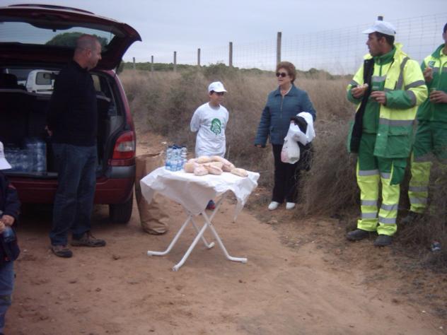 , tuvimos suerte que no nos llovió, luego nos dieron un bocadillo, nos lo habiamos merecido.