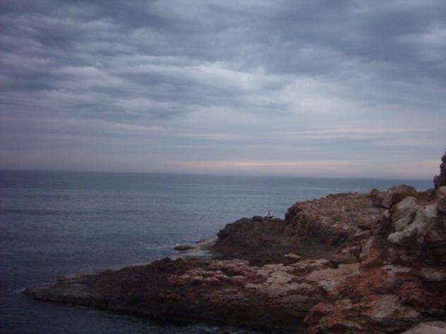 el mar tranquilo, el cielo con nubarrones,