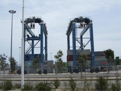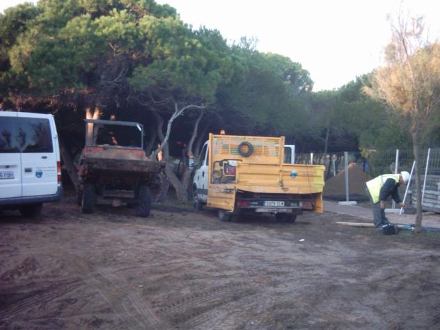 grúas y camiones haciendo el trabajo,