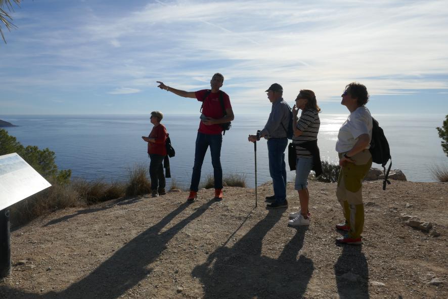 Un grupo junto a la torre de Aguiló,
