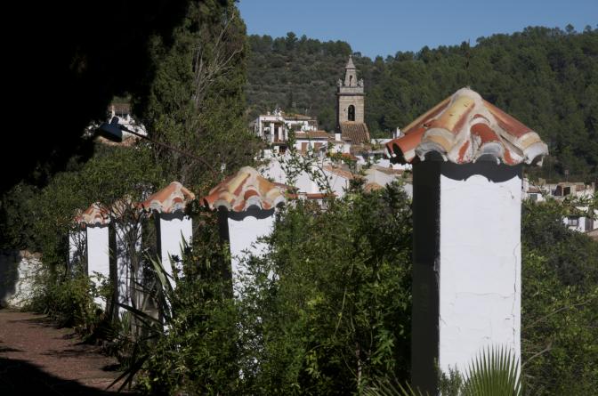 Vía crucis y al fondo Campanario de San Miguel,