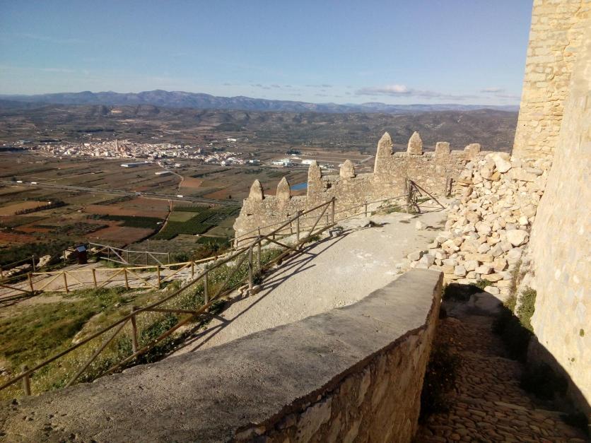 Vista del poblado morisco y la llanura que se abre a los pies del castillo. Al fondo aparece la población de Alcalá de Chivert.
