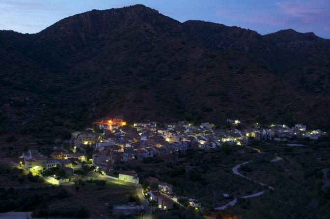 Panorámica nocturna y alumbrado público,