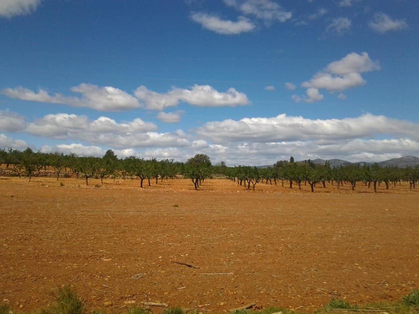 Panorámica rural, almendros,
