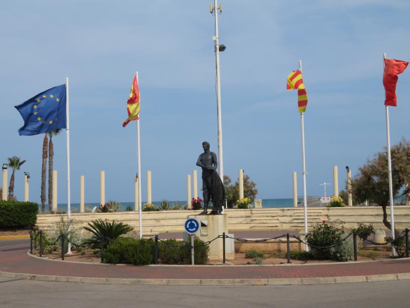 Panorámica urbana. Monumento al pescador de rall,