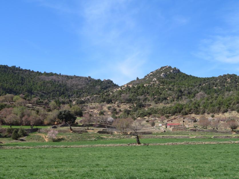 Panorámica rural. Campos sembrados de cereal. Arquitectura rural,