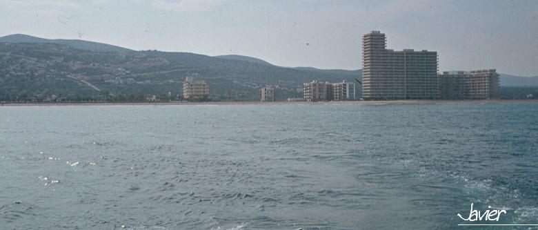 Playa y hoteles (foto antigua),