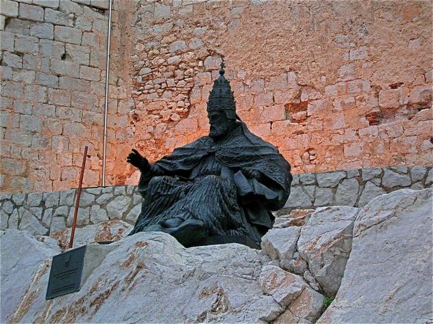 Debe tratarse de Benedicto XIII (el papa Luna), aragonés nacido como Pedro Martínez de Luna y Pérez de Gotor. Fue 1394 elegido pontífice por 20 votos de los 21 y tomó el nombre de Benedicto XIII. Francia se opuso a este nombramiento y quisieron que renunciara, pero él se mantuvo en “sus treces”. Murió en 1423, a los 96 años en el Castillo de Peñíscola, a donde había mudado la sede papal, en el antiguo castillo de la Orden del Temple.